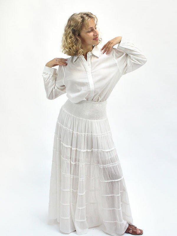 Una camisa amplia, con carácter y frescura. Corte clásico para jugar con capas y siluetas.