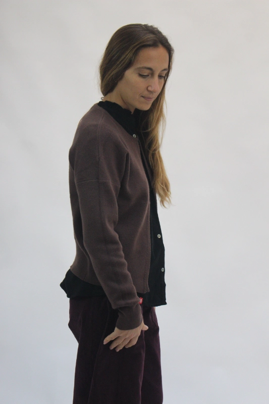 Cárdigan de tacto suave y estructura ligera, diseñado para acompañarte en el día a día con comodidad y sencillez. Su tejido aporta una sensación cálida y agradable, mientras que el corte recto y los puños ligeramente marcados ofrecen un acabado limpio y equilibrado.