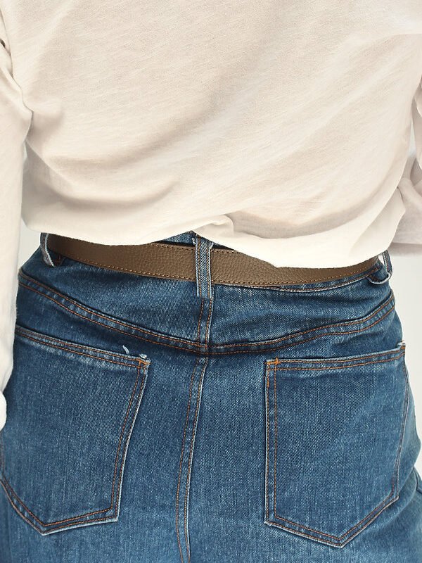 Cinturón estrecho con acabado de brillo sutil y diseño minimalista. Perfecto para realzar la cintura o aportar un toque luminoso a cualquier outfit, ya sea con vestidos, camisas o pantalones.