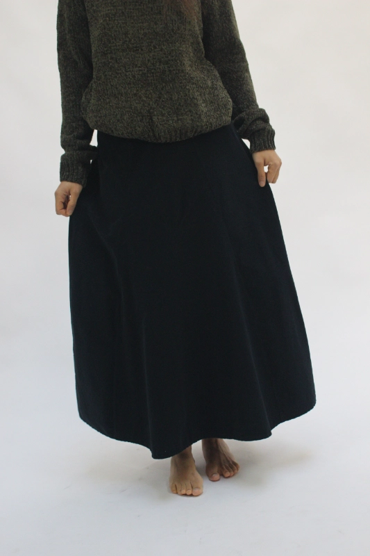 Falda midi de corte amplio y fluido, diseñada para ofrecer una silueta elegante y confortable. La cintura presenta un ajuste flexible que se adapta con suavidad, aportando comodidad sin perder estructura.