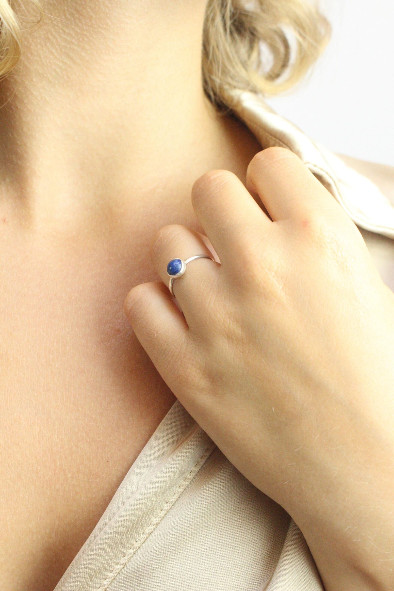 Este anillo de plata 925 incorpora una piedra de lapislázuli natural en formato compacto de 6 mm. El azul intenso de la piedra se combina con un diseño sobrio y pulido, elaborado artesanalmente en Tarifa. Disponible en tallas: 10, 12, 14, 16 y 18. Una joya que transmite profundidad sin exceso, ideal para quienes valoran la simplicidad con presencia.