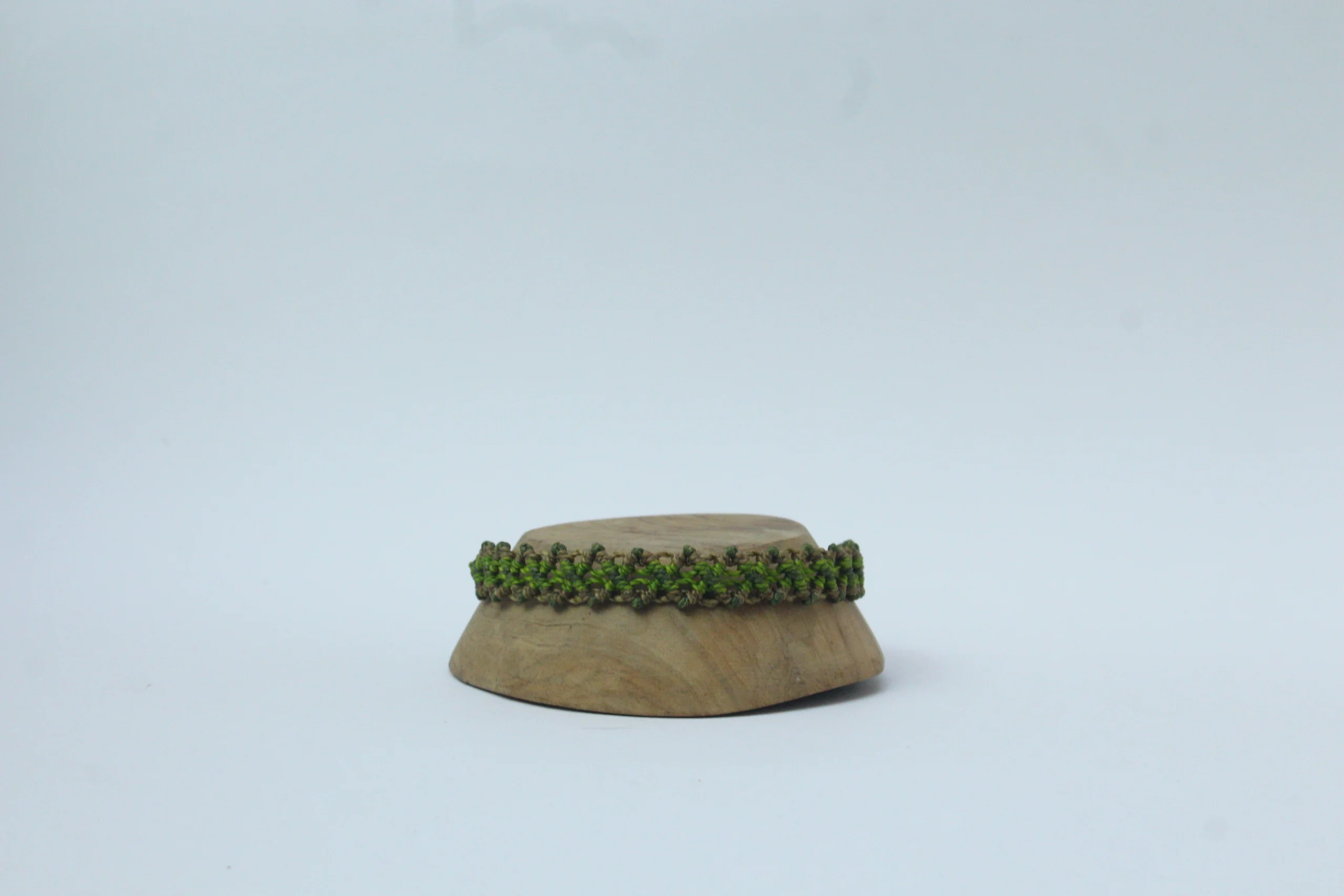 La Pulsera AFRICA es un diseño artesanal con hilo encerado Linhasita, tejido a mano en macramé con un patrón de rombos que aporta dinamismo y estilo contemporáneo.