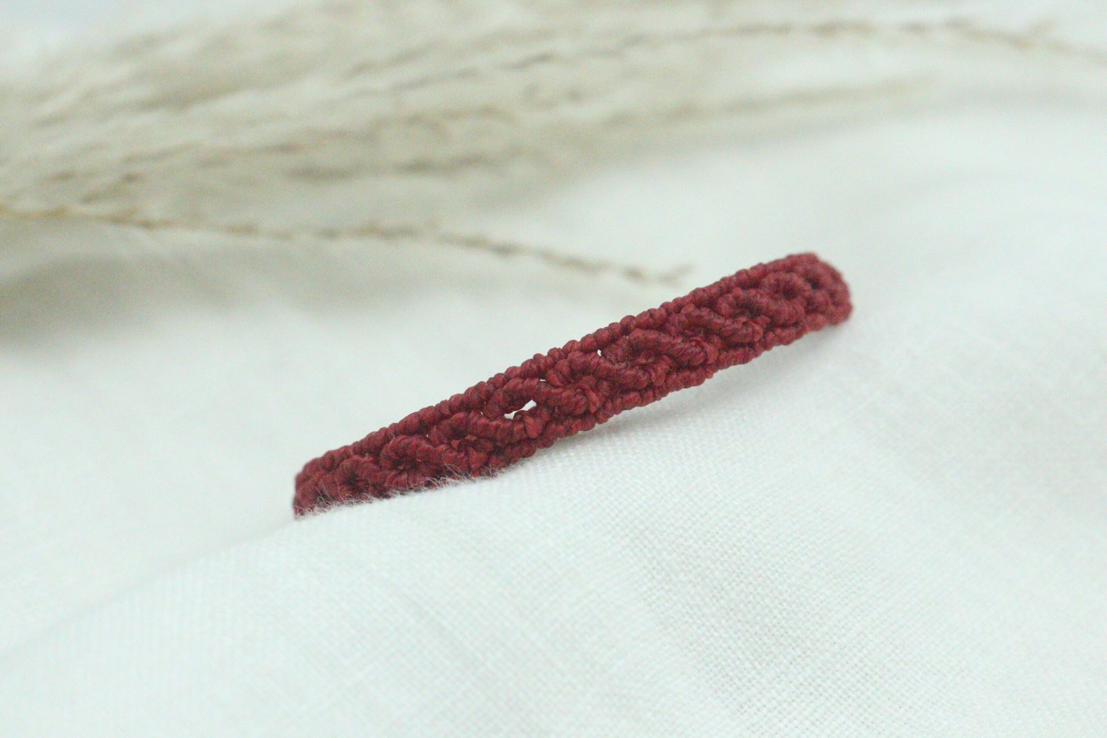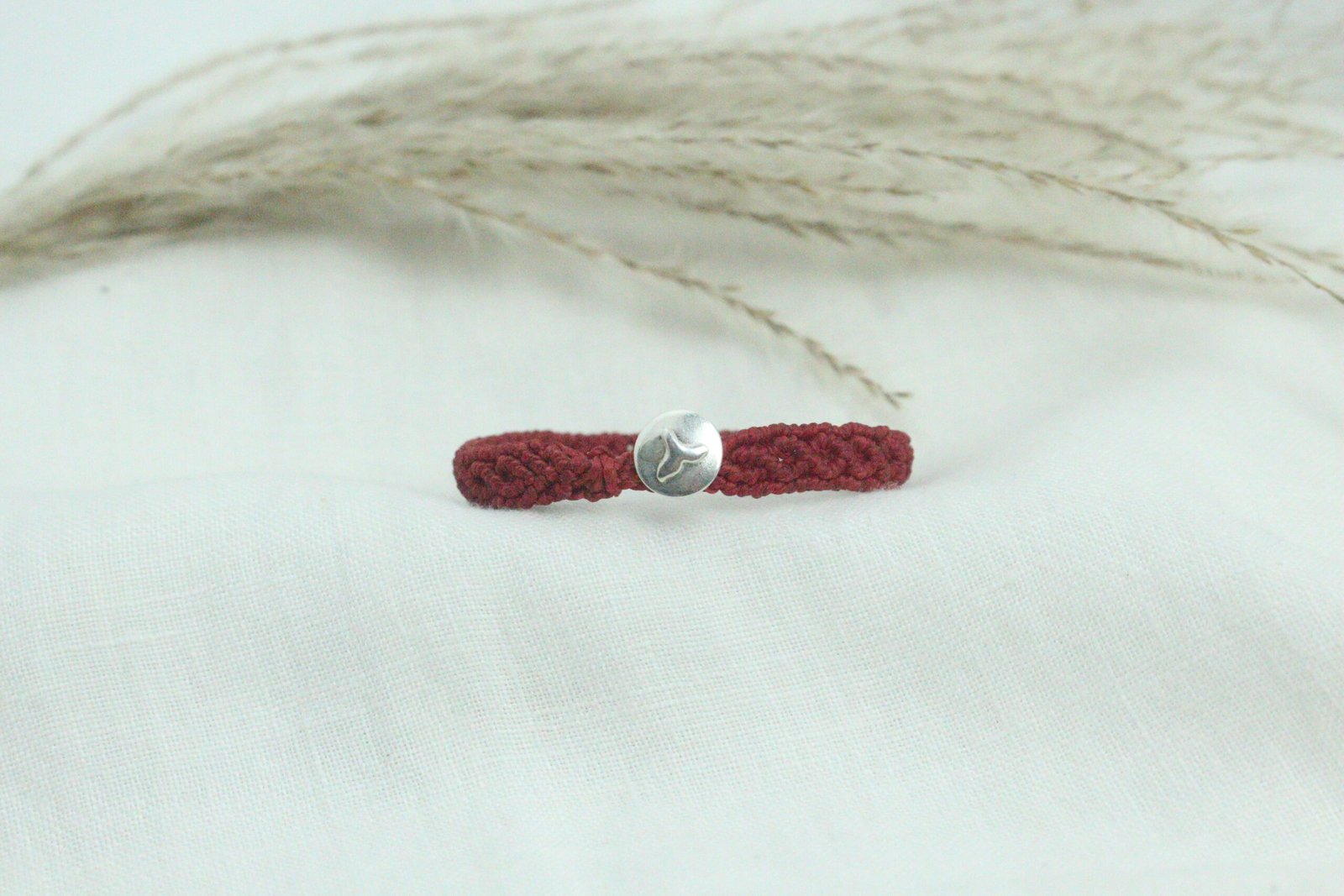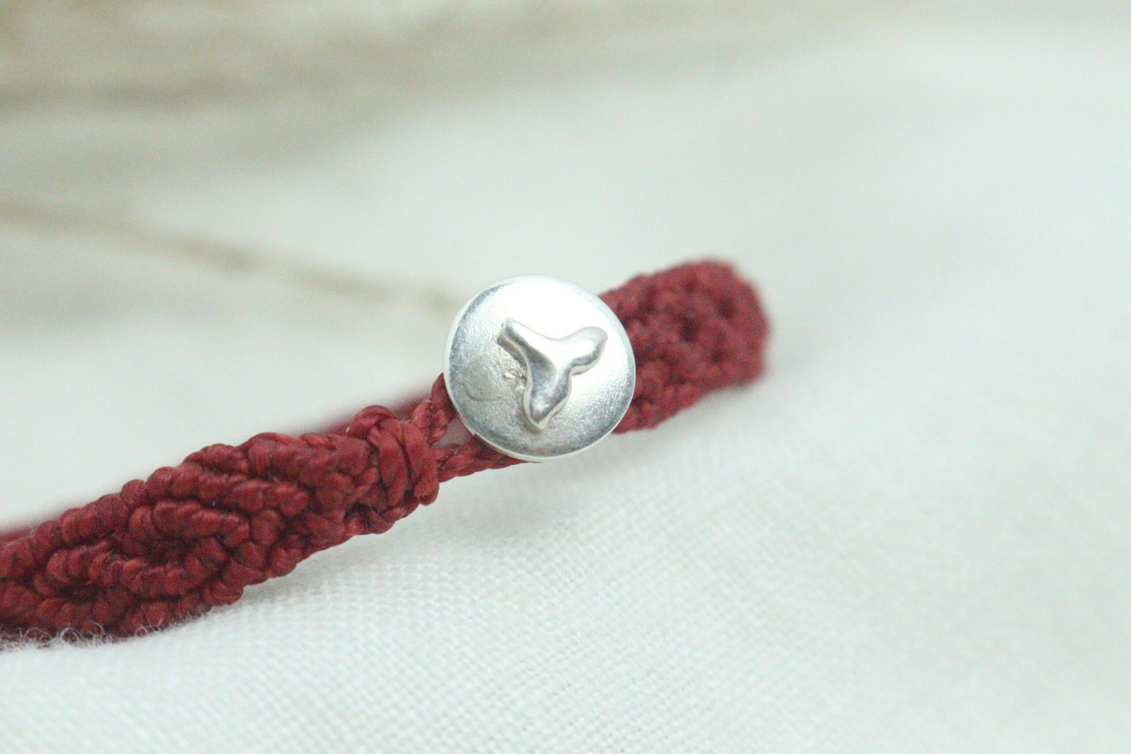 Pulsera artesanal en macramé con hilo Linhasita y patrón de diamantes. Cierre con botón de plata 925. Perteneciente a la Colección Corona del Sur, hecha a mano en Tarifa.