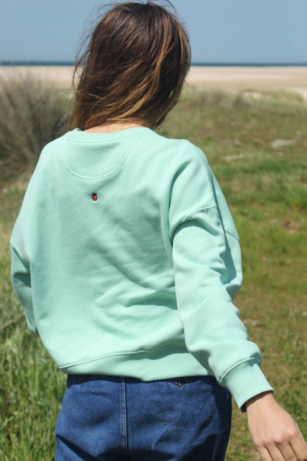 Sudadera sin capucha, con hombros caídos y felpa perchada. Aporta abrigo sin volumen. Perfecta para capas, espacios amplios y días tranquilos.