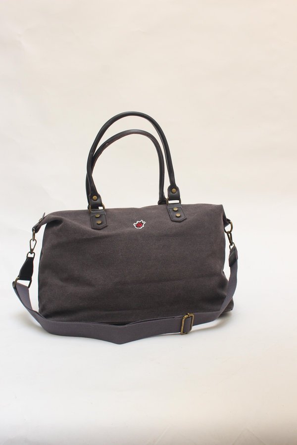 Bolso tote de lona resistente con detalles de cuero. Para caminos cotidianos y viajes espontáneos.